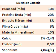 Composición: Harina de Carne, Harina de Víscera de Pollo, Huevo deshidratado, Leche Integral en Polvo, Digest de Hígado de Pollo, Arroz Integral, Maíz Integral Molido, Harina de Trigo, Trigo Integral, Harina de Soya, Levaduras de Cervecería, Grasa de Pollo, Sal Común, Extracto de Yuca, Vitaminas (Vitamina A, Vitamina C, Vitamina D3, Vitamina E, Vitamina K3, Vitamina B1, Vitamina B2, Vitamina B6, Vitamina B12, Acido Fólico, Pantotenato de Calcio, Biotina, Cloruro de Colina, Acido Nicotínico), Minerales (Sulfato de Cobre, Sulfato de Hierro, Yodato de Calcio, Sulfato de Manganeso, Selenito de Sodio, Óxido de Zinc, Cloruro de Potasio), Antioxidante. (Este producto no tiene colorantes artificiales en su composición, sujeto a pequeñas variaciones en su color).